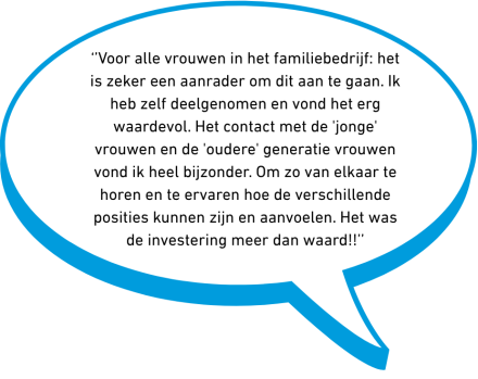Een familiebedrijf kan best ingewikkeld zijn en vrouwen kunnen dat anders ervaren dan mannen. Of je nu ondernemer bent in een familiebedrijf, partner bent van een ondernemer of samen ondernemer bent, het bedrijf neemt een grote plek in en dat staat soms op gespannen voet met het gezinsleven en de familie. Zeker als de bedrijfsoverdracht in zicht komt. Dat levert weer nieuwe situaties en gespreksonderwerpen op, zowel vanuit het perspectief van de overdrager(s) als van de opvolger(s). Wat is dan jouw rol als vrouw? Is die wezenlijk anders dan die van je partner? Hoe kun jij bijdragen aan het opvolgingsproces, de harmonie in het gezin en tegelijkertijd je eigen grenzen bewaken?